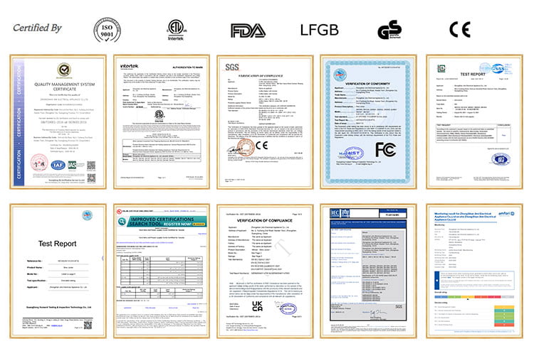 FDA, CE, CB, GS,LFGB, ROHS, REACH, etc.